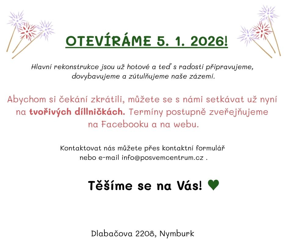 Stačí, když napíšete na náš email info@posvemcentrum.cz, nebo využít kontaktní formulář a my Vám účast potvrdíme.