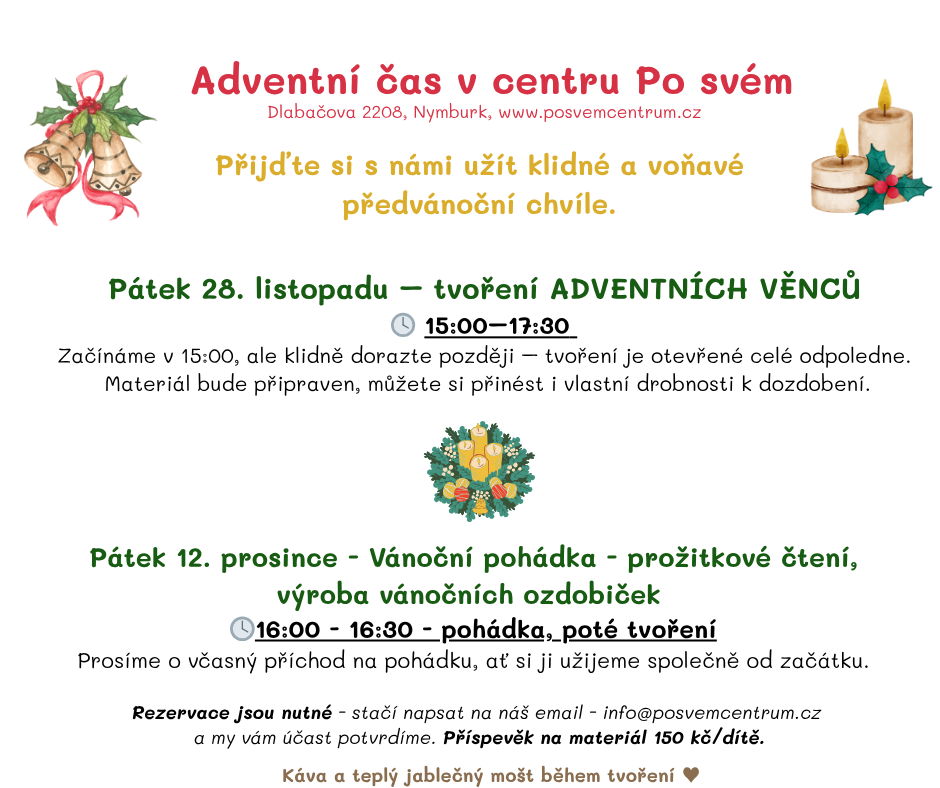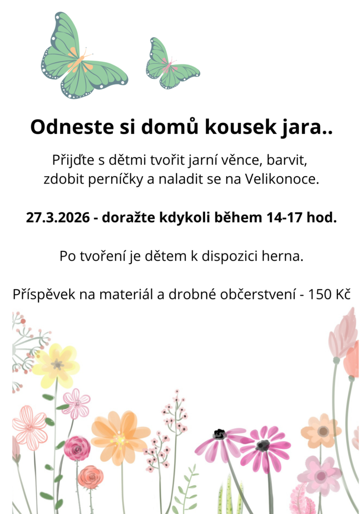 Délka dílničky je přibližně 60–90 minut. Příspěvek na materiál 120 Kč/dítě.
